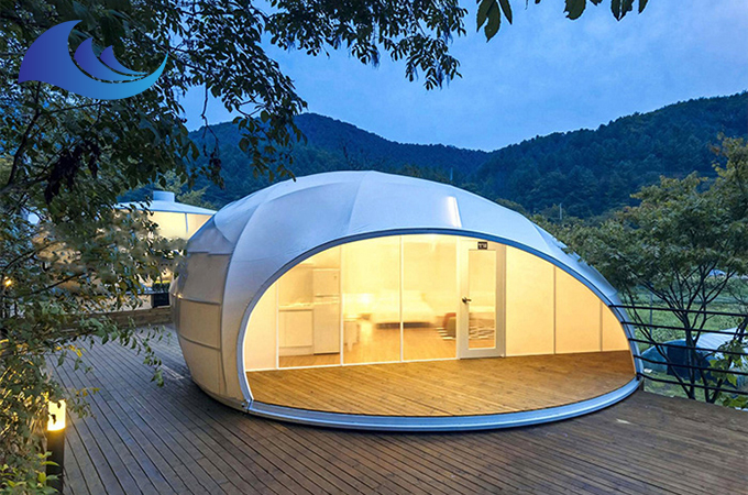 在規(guī)劃及建筑方案設計上,都比較出眾,也是近年來國內蓬勃發(fā)展的酒店創(chuàng)新類型。而至于荒郊野外的“帳篷酒店”就是野奢酒店的代表,不僅在戶外隨便搭,野外隨便搭,不會影響到居住問題。從野奢帳篷酒店是采用高強度的鋁合金結構,在戶外可以對抗8-12級左右的大風。而帳篷的雙層覆蓋篷布同樣是具有抗風防水、防紫外線阻燃的特性,所以可以保證在露營住宿的時候不會被各種天氣所影響,安全舒適。
